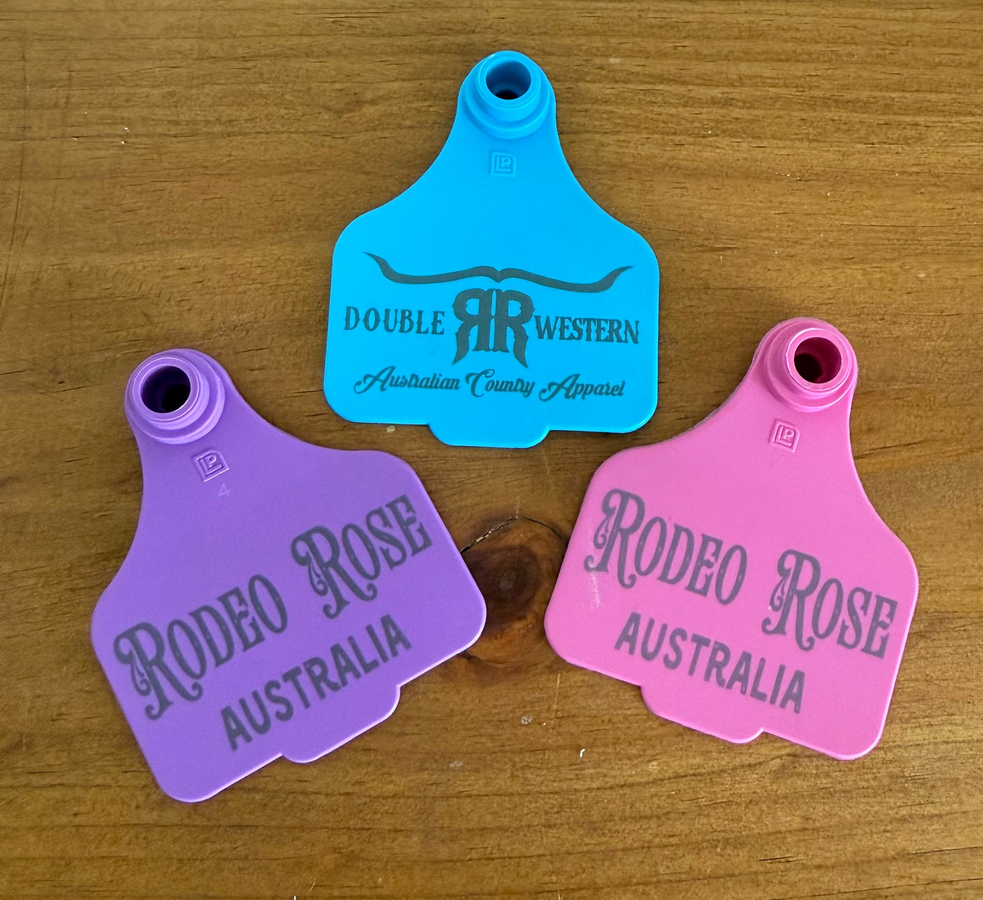 Double R Western Co cattle tags are a must for our Dusty Boots Crew.