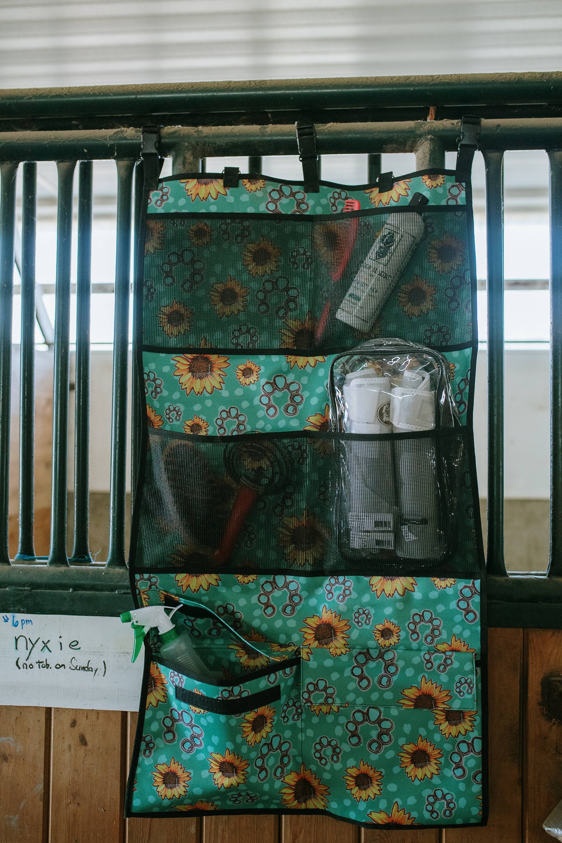 Holds grooming supplies, boots, sprays & more!