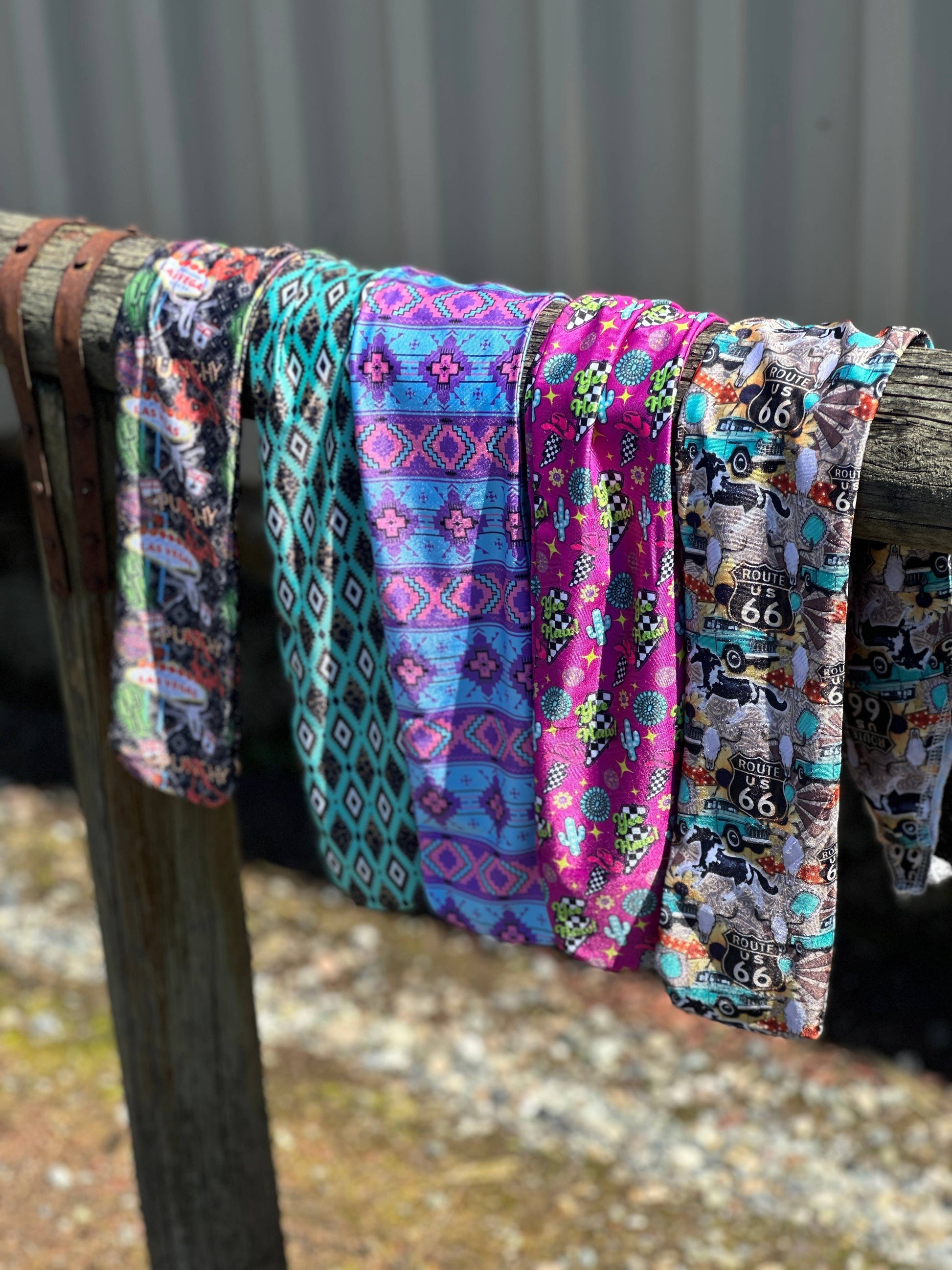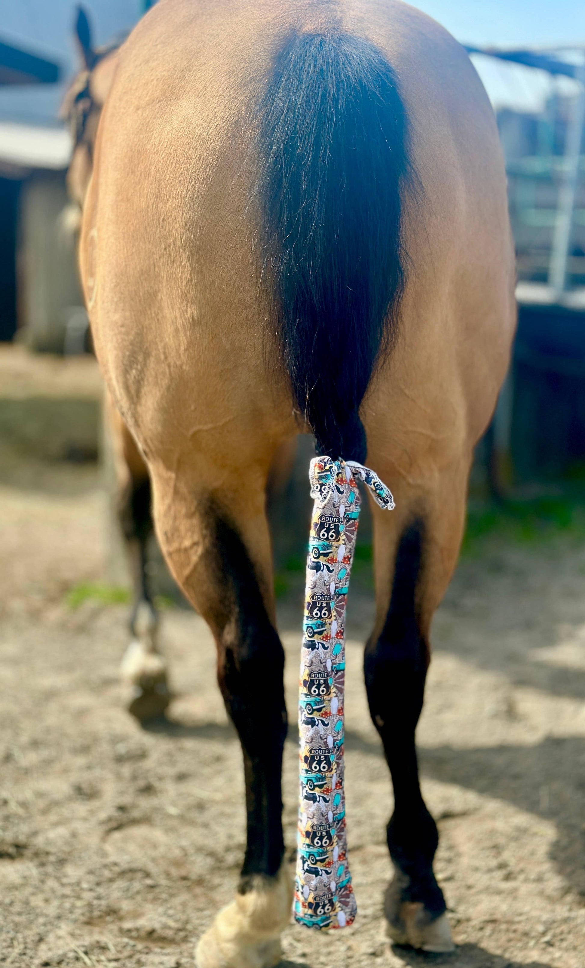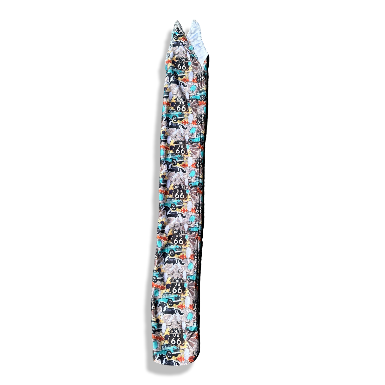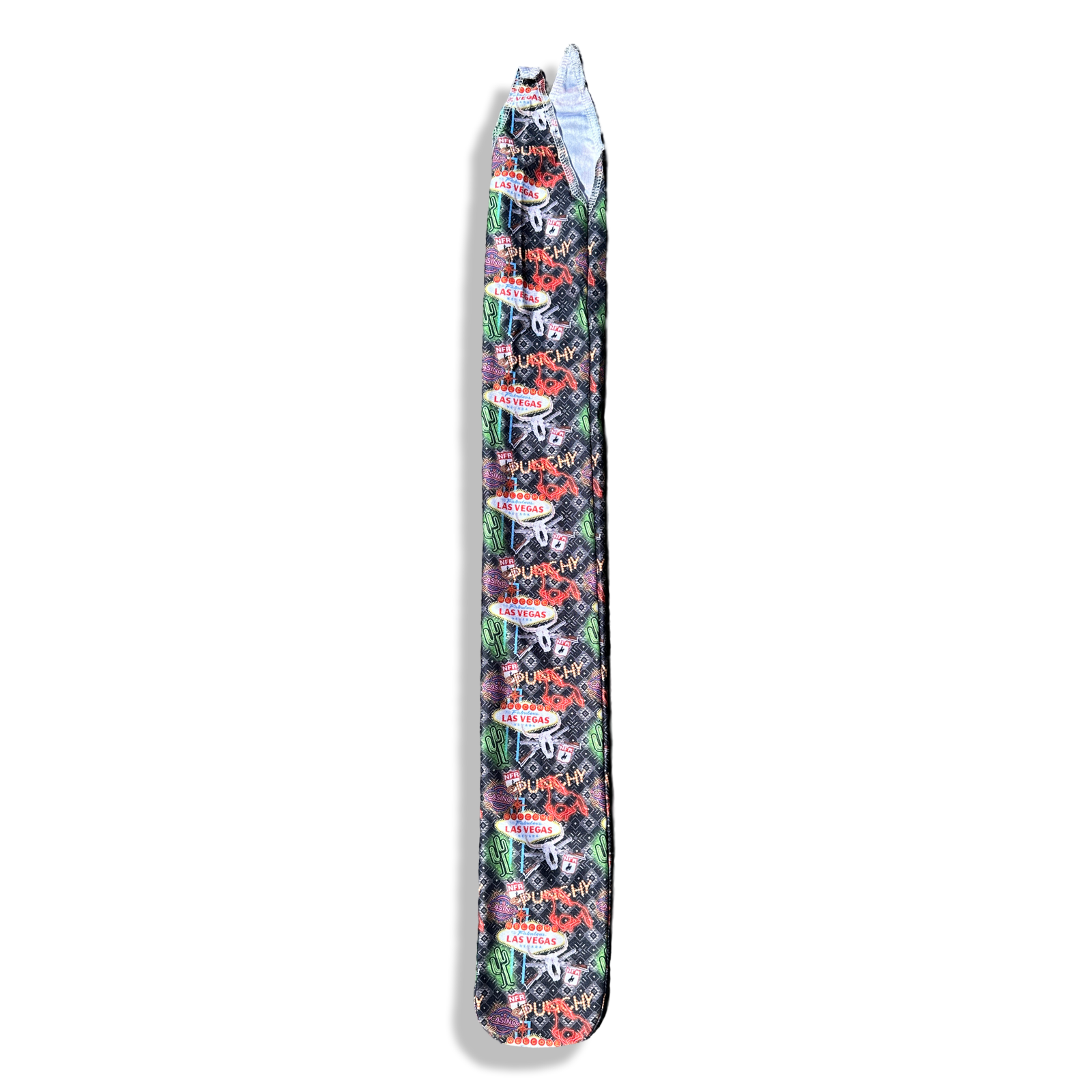 Lycra tail bag in some of our most popular prints. Measures 10cm wide and 79cm long including tabs. Ties into tail to secure.